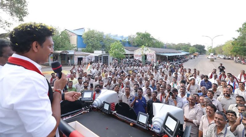 பெல் தொழிற்சாலை தொழிலாளர்களிடம் தீவிர வாக்கு சேகரிப்பில் ஈடுபட்ட மகேஷ் பொய்யாமொழி!