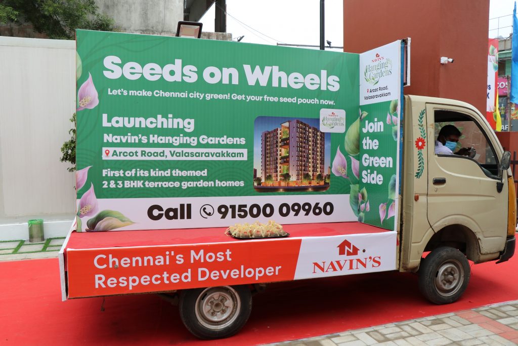 Chennai, October 8th 2021:Navin’s, one of Chennai’s most trusted& respected developers, today unveiled a week-long green initiative in the city – Seeds on Wheels. This novel concept will have a representative from Navin’s in a specialized vehicle going around the city distributing free seed balls that can be used to plant trees, thereby initiating the habit of plantation amongst the Chennaities. The campaign will be set in motion starting today, 8th October 2021