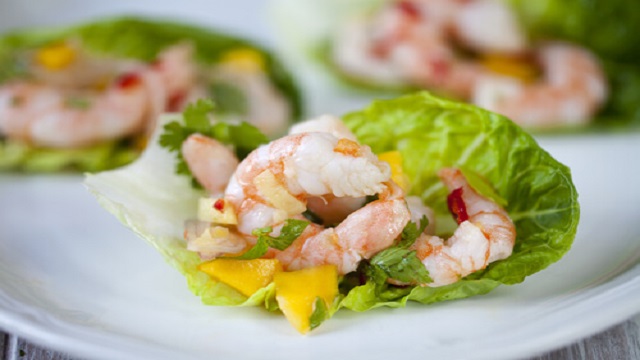 Mix the salad: In a bowl, combine the cooked prawns with chopped mango and litchis. Add peanuts for crunch, season with salt, and serve immediately.