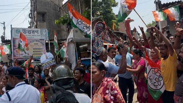 Soon, TMC supporters nearby responded with their own slogans. This led to arguments between the two sides. The situation quickly became tense and turned into a physical fight.