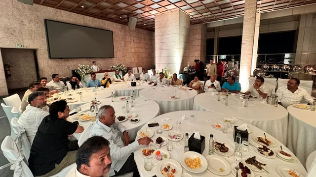 The internal power struggle in the Indian National Congress in Karnataka appears to be growing stronger. On Tuesday, at least 45 MLAs from the ruling party met in Bengaluru at the Shangri-la Hotel to discuss their chances of getting cabinet positions in the government led by Chief Minister Siddaramaiah.