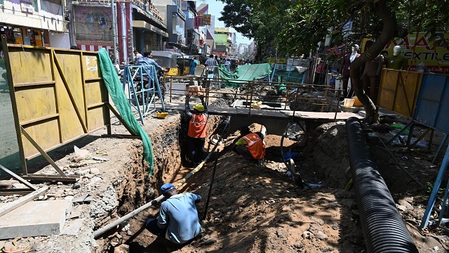 At the same time, A. Putli, a 50-year-old woman from the area, was focused on earning her daily income. She was selling buttermilk and aloe vera to passersby, continuing her routine despite the official work happening around her.