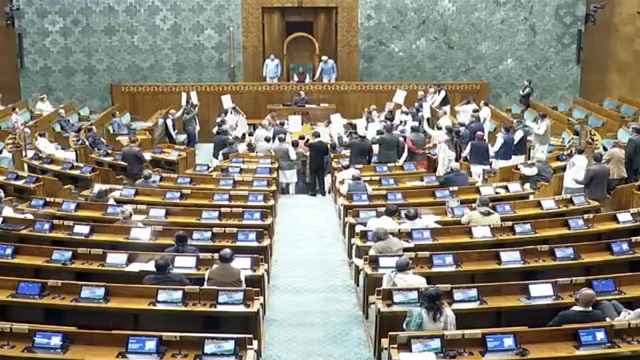 When the House met again at 12 noon after the first adjournment, members of the Opposition parties, including the Congress, Trinamool Congress (TMC), and DMK, came into the well of the House and shouted slogans against the government. Their protest caused noise and confusion inside the chamber.