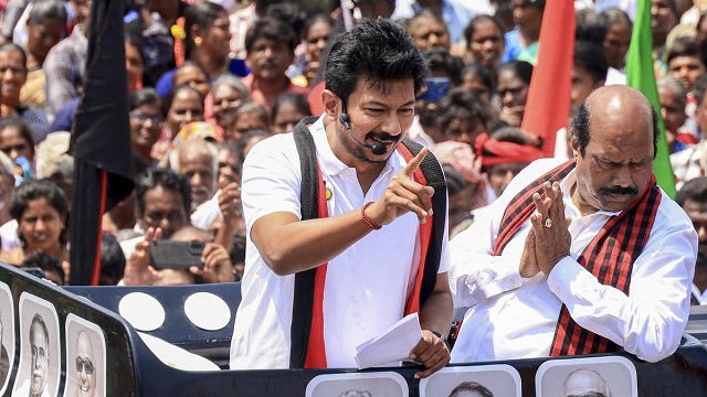 As Deputy Chief Minister Udhayanidhi Stalin approached, the street buzzed with excitement. Traditional music filled the air, creating a festive mood. Bright flags and signs with election symbols lined the street, making it look like a colorful campaign trail. A local band played light music and political songs, keeping the crowd energetic despite the hot evening.