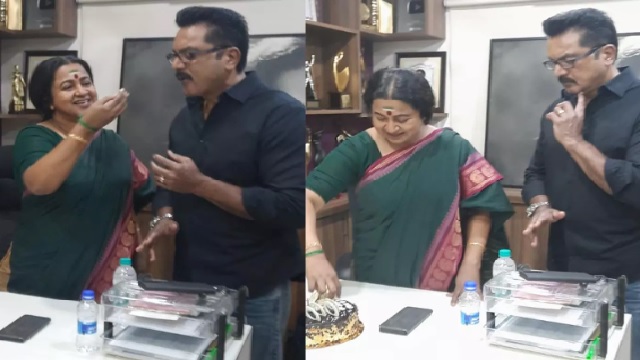 திரைத்துறையில் 45 ஆண்டுகளை நிறைவு செய்த நடிகை ராதிகா – கேக் வெட்டி கொண்டாடிய கணவர் சரத்குமார்