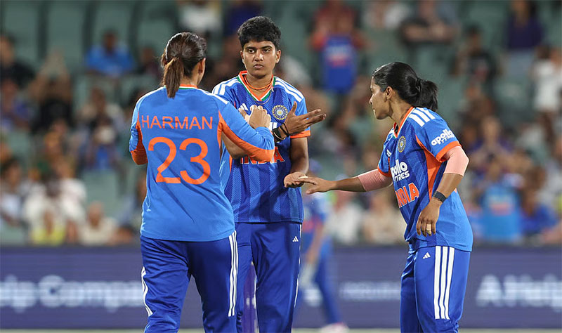 இந்திய மகளிர் அணி ஆஸ்திரேலியாவில் சுற்றுப் பயணம் செய்து 3 வடிவிலான கிரிக்கெட் தொடரிலும் விளையாடுகிறது. 3 போட்டிகள் கொண்ட டி20 தொடரின் கடைசி போடடி இன்று அடிலெய்டில் நடைபெற்றது. முதலில் பேட்டிங் செய்த இந்தியா 6 விக்கெட் இழப்பிற்கு 176 ரன்கள் குவிததது. ஸ்மிரிதி மந்தனா 82 ரன்களும், ஜெமிமா ரோட்ரிக்ஸ் 59 ரன்களும் விளாசினர்.