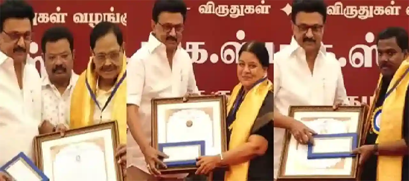 விருதாளர்களுக்கு விருதுத் தொகையாக ரூ.5 லட்சம், ஒரு பவுன் தங்கப்பதக்கத்தையும் முதலமைச்சர் மு.க.ஸ்டாலின் வழங்கினார்.