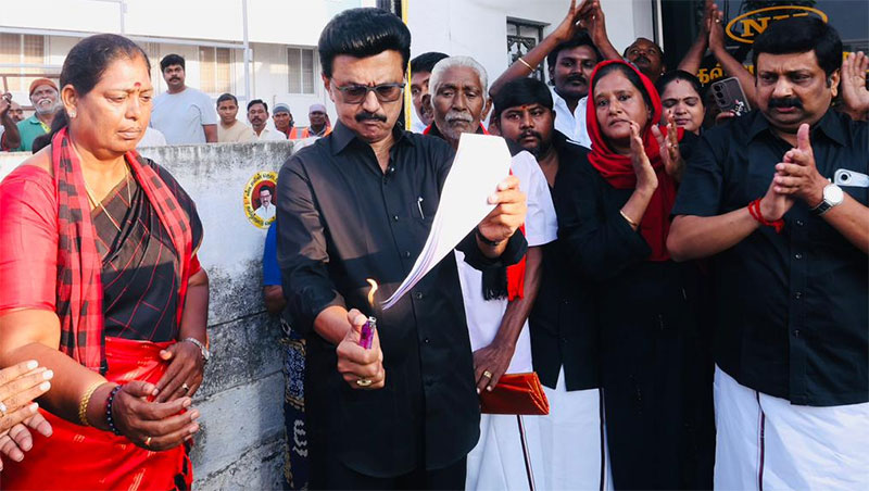 தொகுதி மறுவரையறை மசோதாவுக்கு எதிர்ப்பு தெரிவிக்கும் வகையில், நகலை தீயிட்டு எரித்த முதலமைச்சர் மு.க.ஸ்டாலின், மற்றுமொரு தீயினைப் பற்ற வைத்திருக்கிறேன், என்று தெரிவித்துள்ளார்.