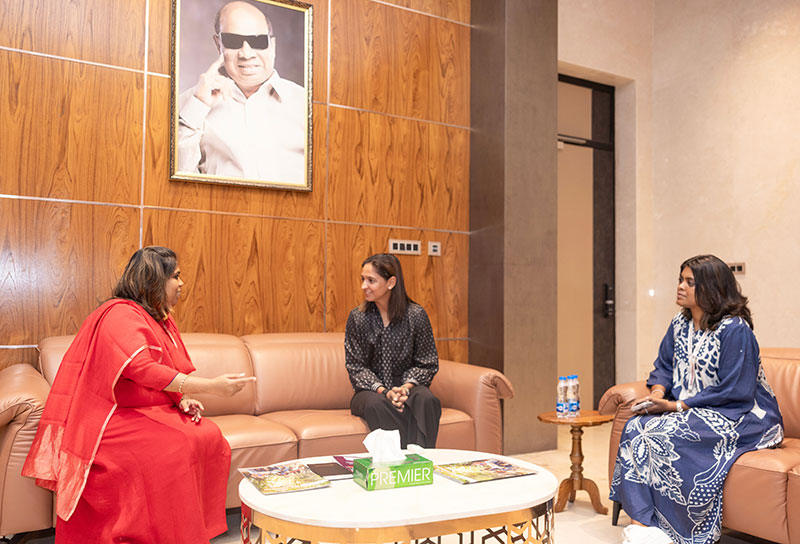 இந்தியாவெங்கும் மகளிருக்கு முன்னுதாரண முகமாக மாறியுள்ள ஹர்மன்ப்ரீத் கவுர், உலகக் கோப்பையின் வெற்றிக்குப் பிறகு, முதன்முறையாக சென்னை வருகை புரிந்துள்ள நிலையில், சத்யபாமா அறிவியல் மற்றும் தொழில்நுட்ப நிறுவனத்திற்கு சென்று பல்கலைக்கழகத்தின் வேந்தர் Dr. மரியாசீனா ஜான்சன் மற்றும் பல்கலைக்கழகத்தின் தலைவர் Dr. மரி ஜான்சன் ஆகியோரை சந்தித்து உரையாடினார்.