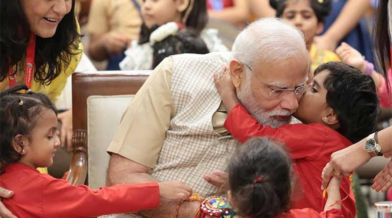 பள்ளி குழந்தைகளுடன் ரக்ஷா பந்தன் கொண்டாடிய பிரதமர் மோடி