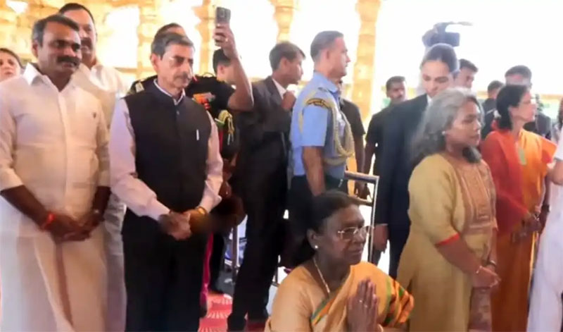 ஜனாதிபதி திரவுபதி முர்மு நேற்று முதல் கர்நாடகா, தமிழ்நாடு, தெலுங்கானா மாநிலங்களில் சுற்றுப்பயணம் மேற்கொண்டுள்ளார். இந்தநிலையில் இன்று காலை திருப்பதி ரேணிகுண்டா விமான நிலையத்திற்கு வந்தார். அங்கிருந்து ராணுவ ஹெலிகாப்டர் மூலம் வேலூர் ஸ்ரீபுரம் தங்க கோவிலுக்கு வருகை தந்தார்.