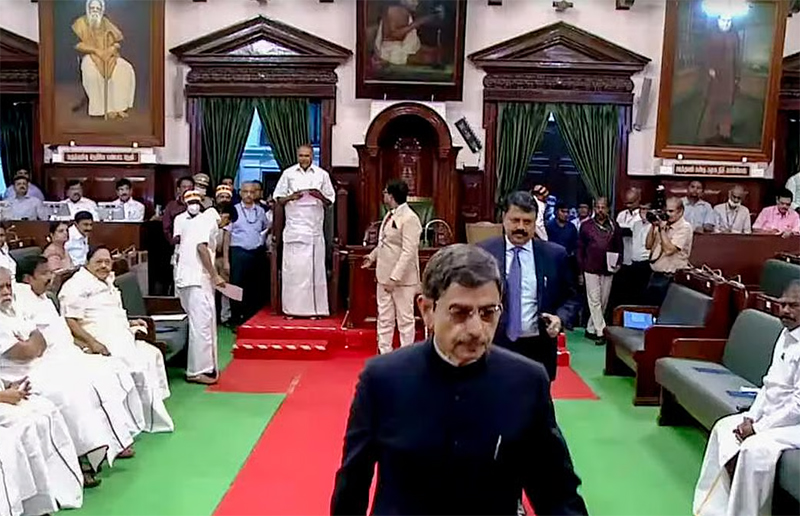 பரபரப்பான சூழ்நிலையில் இந்த ஆண்டின் முதல் சட்டசபை கூட்டத்தொடர் இன்று தொடங்கியது. தமிழ்த்தாய் வாழ்த்துடன் சட்டசபை தொடங்கியது. இந்நிலையில் உரையை படிக்காமல் இந்த ஆண்டும் ஆளுநர் ஆர்.என்.ரவி வெளியேறினார். 4-வது ஆண்டாக இந்த ஆண்டும் உரையை படிக்காமல் ஆளுநர் வெளியேறியதால் சற்றுநேரம் சலசலப்பு ஏற்பட்டது. சட்டசபையின் தொடக்கத்தில் தேசிய கீதம் பாடவில்லை எனக்கூறி ஆளுநர் வெளியேறினார்.